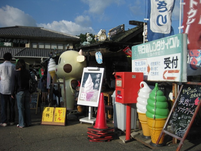 遺跡前。明日香は結構な賑わい。奈良ではレンタサイクルがはやってます。古代米ソフトがかなり気になるけど。。。