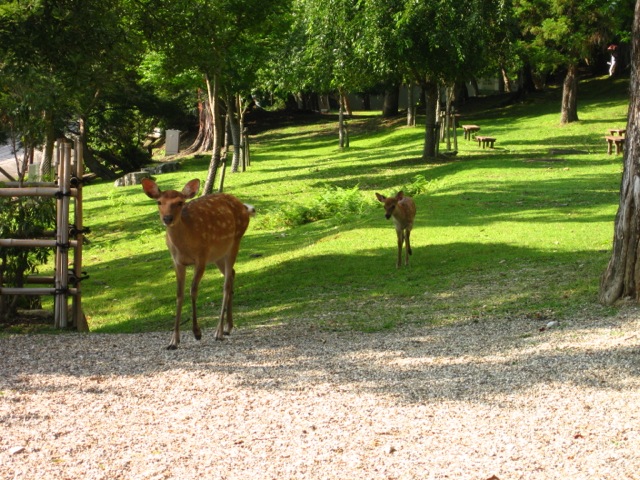 背後の鹿せんべいは、買うと一気に鹿界のアイドルになれます。