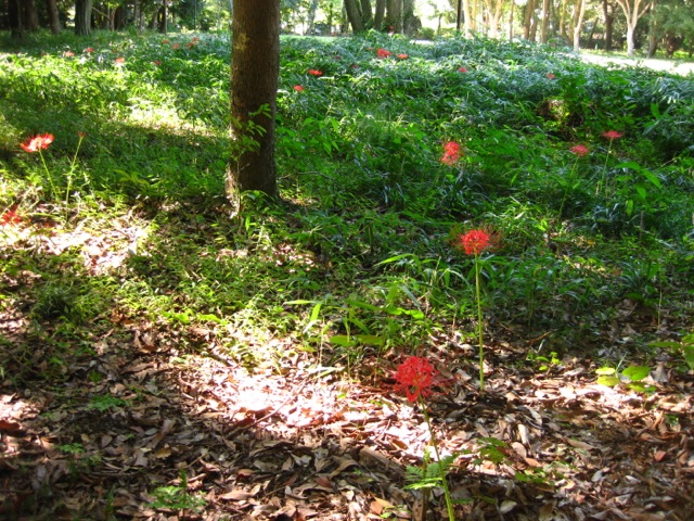 広大な敷地を散歩する。彼岸花がたくさん咲いていた。