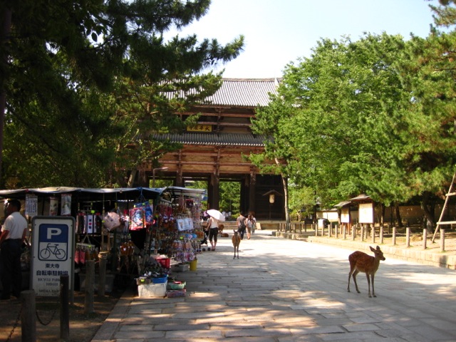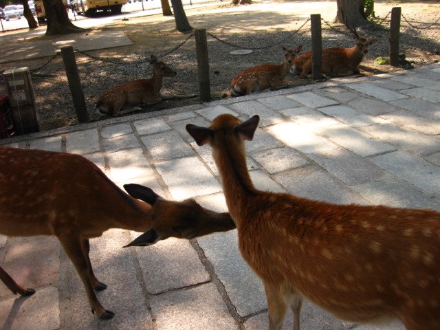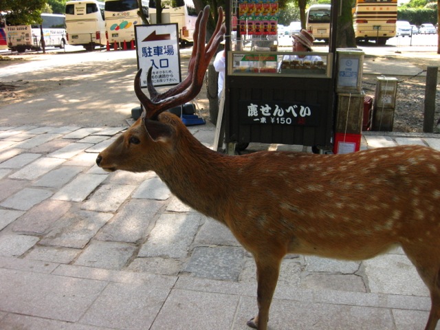 背後の鹿せんべいは、買うと一気に鹿界のアイドルになれます。