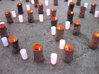 小学校で、手作りの埴輪に明かりを灯す行事をしていました。