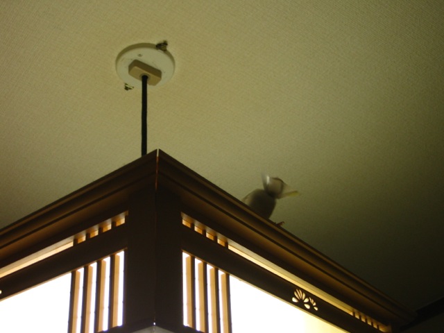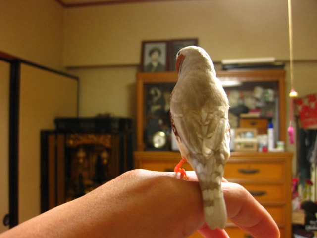 しばらくすると環境に慣れて「出してくれー」コールをしてきたので放鳥してみました。実家には長いこと手乗りインコが居たので、家族は鳥の扱いには馴れてます。