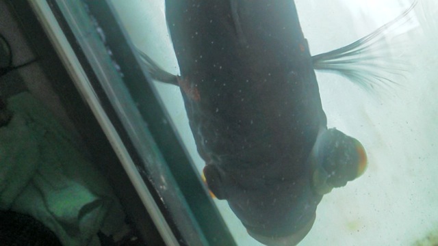 実は稚魚の頃も1度エロモナスにやられてまして…その時はポップアイではなく穴あき病(顔にぽつぽつ穴があきます)でした。その時も観パラDで治療しました。