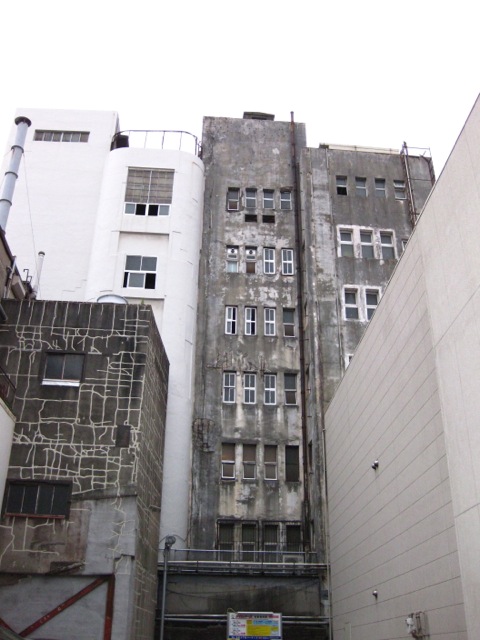 5ヶ月離れただけだが、その間にも町は建物が無くなったりできたりの代謝が。ぽっかり駐車場になり、素敵模様の壁が露出。
