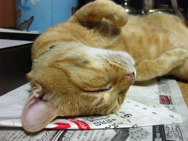 さらに悦。で、よく解らないポーズで寝ている。