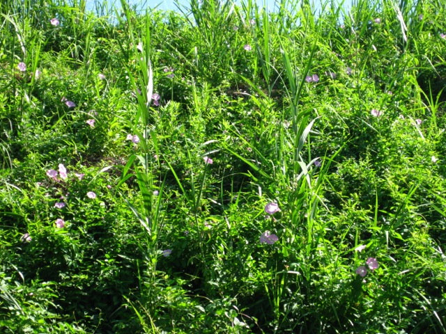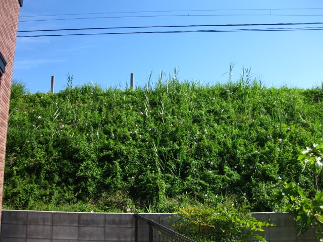 裏の土手が朝顔だらけに。
