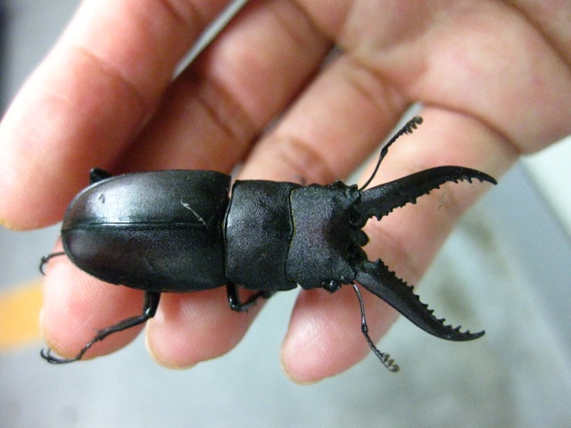 夜はゲーセンの駐車場でクワガタを拾いました。