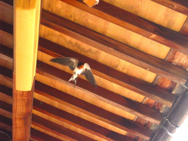 昔の家なので玄関がとても広くとられていて天井には古いツバメの巣がたくさんある(家の中、ですよ。鍵をかけずに外出しているような昔の時代の巣と言う事)。もう何十年も昔のものなのに、ツバメはそれを知っているらしい。