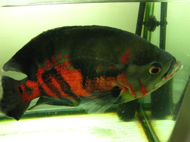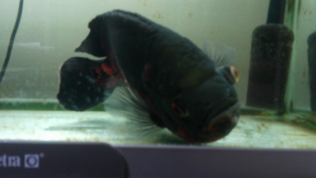 実は稚魚の頃も1度エロモナスにやられてまして…その時はポップアイではなく穴あき病(顔にぽつぽつ穴があきます)でした。その時も観パラDで治療しました。