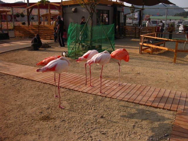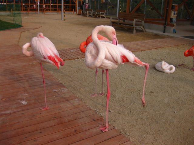 フラミンゴもそこらへんに。中々触らせてはくれない。