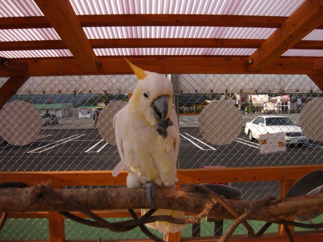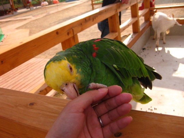 遠くからルリコンゴウインコが見えたので、大きいインコと遊びたい!と思い300円を払い入場。