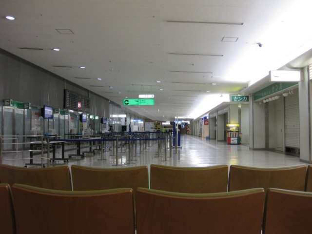 伊丹空港ロビー。ああ、売店も開いてやしません。
