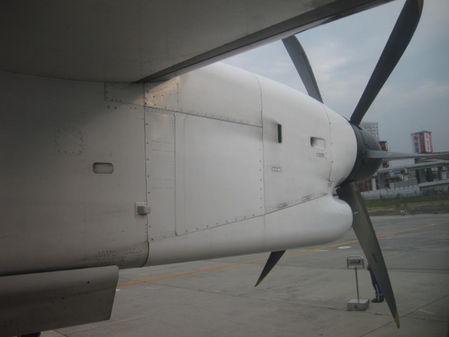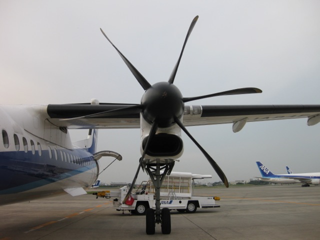 あたしたちが乗るのはこちらのプロペラ機。なんかビックリするくらい小型…。