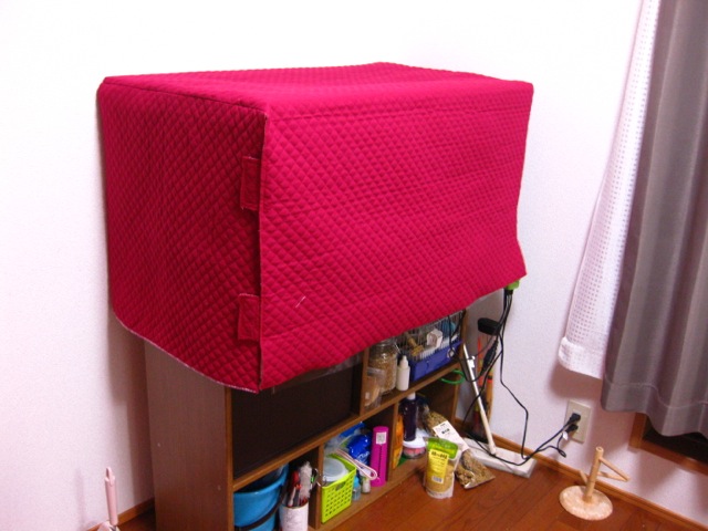 やっと作った保温箱用おやすみカバー。キルトなので光も通し難いし、あったかかと。