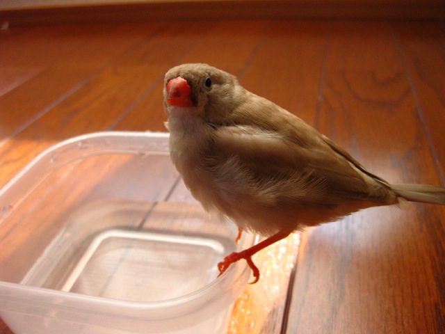 今日、フローリングの光るのを見て水浴びらしいぱたぱたを見せたので、水浴びさせてみることに。