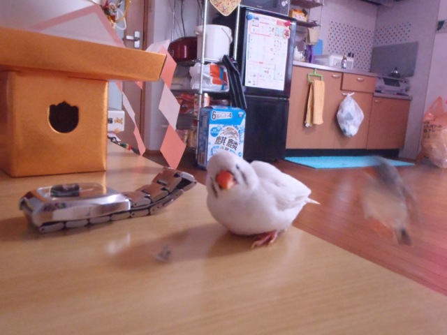 誰かを鏡餅に乗っけて撮ろう…とするも、あの大人しいちゃんぷでさえ嫌がって飛び立ちましたから、ええ。
