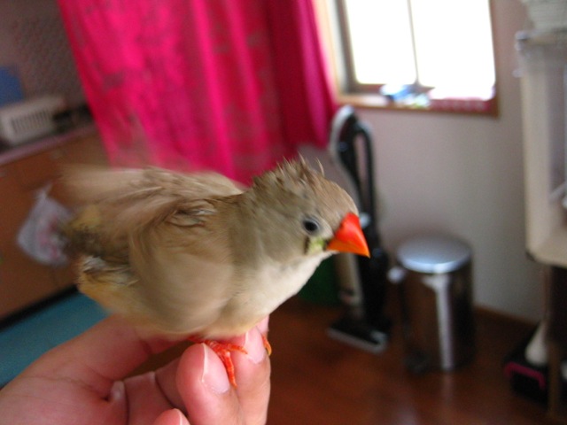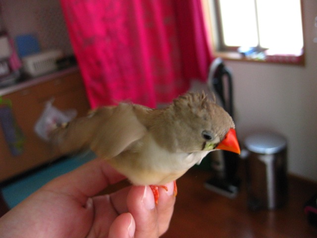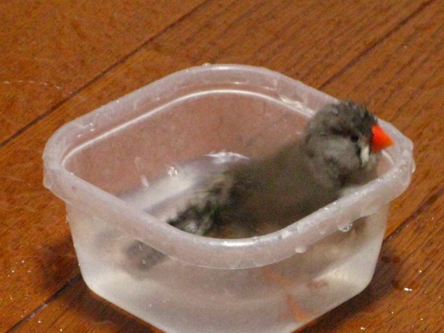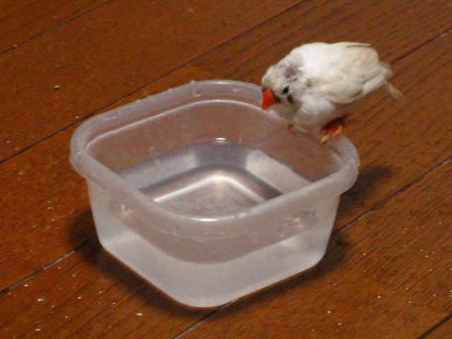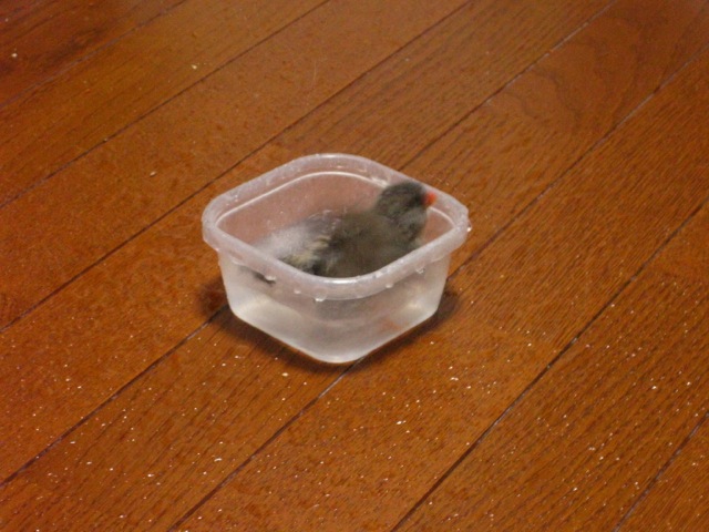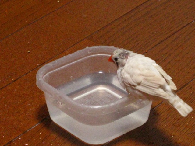 羽が少ないので濡れるとあまり飛べなくなるあーちゃん。