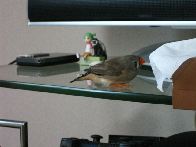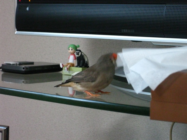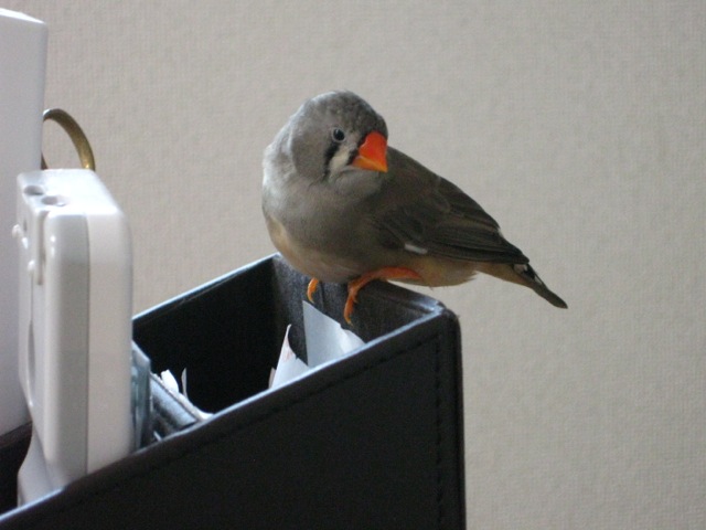 ケージ内の変化には敏感ですが、放鳥中は割と度胸の子。