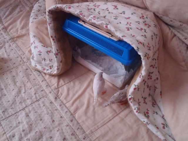 卵詰まりの可能性が高い、とのことで、もっと高温で保温すること(40℃近くても良い、とのこと)。そしてお薬(ビタミン剤、カルシウム剤、抗生物質)を頂いて帰宅。