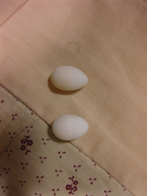 上の、少し尖ったほうがあーちゃんの。下のまるっこいのがプンプンのです。