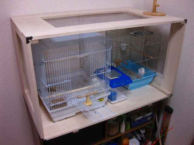 銀鈴とインコチームのケージは大きいので
