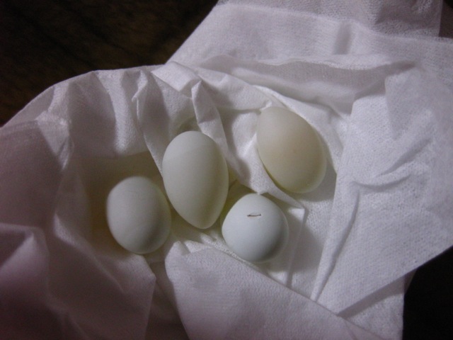 今は別の場所に巣材を運んでいる様子で近寄らなくなったので、産んでた卵を撤去する事にしました。