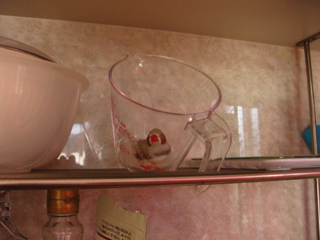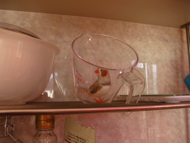 しらたまは完全に台所が気に入ってるし…。(ピンぼけ写真やけどまるーい胴体が可愛かったので載っけました)