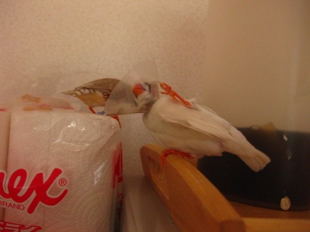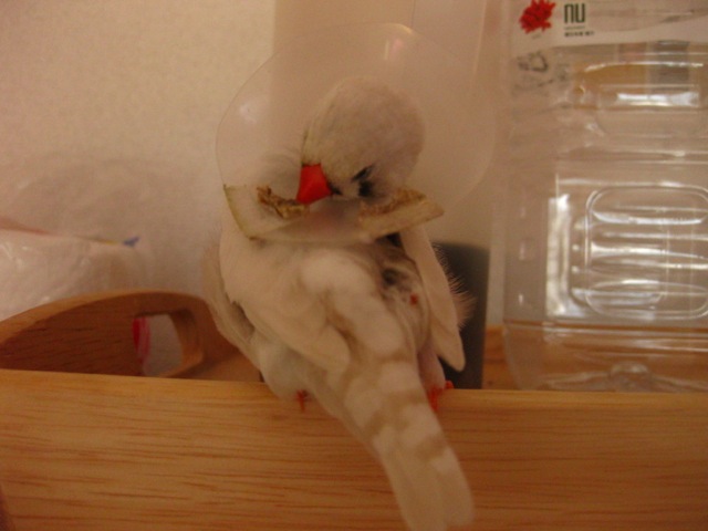 首の後ろがだんだんハゲてきたのでそろそろ考えんと…。でもエリカラ取るとまた足噛みそうで嫌だなあ…。無限ループ?