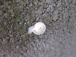 ここの壁に、たくさんのカタツムリが。真っ白です。