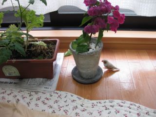 キンカのご飯穀物もここに撒いたりしてるのですが、どうもヒヨドリっぽいものが食べにきているよう。