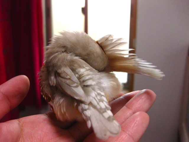 未だに飛ぶのがへたくそです。羽ばたく力が弱い訳では決してないです。先天的に羽がスカスカの子が居ると他所さまのページで拝見したので、それなのかなあとか思ってます。