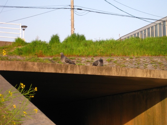 視線を感じて振り向くと、ハトの夫婦が。