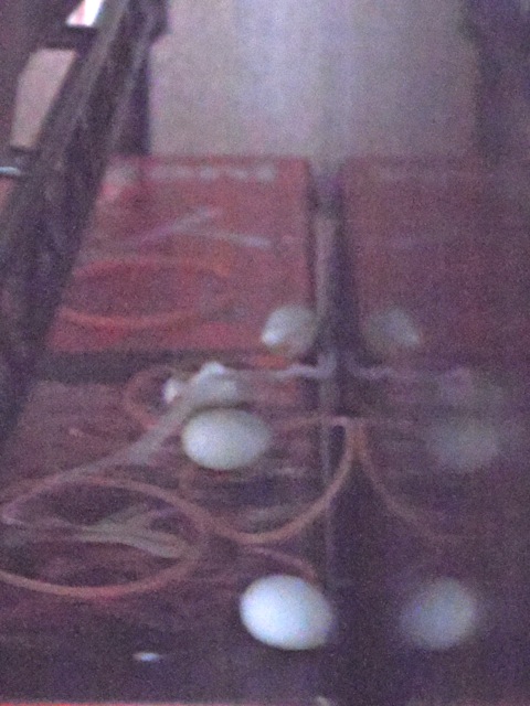キッチンラックの炊飯器とポットの隙間に卵を産んでいた白組。