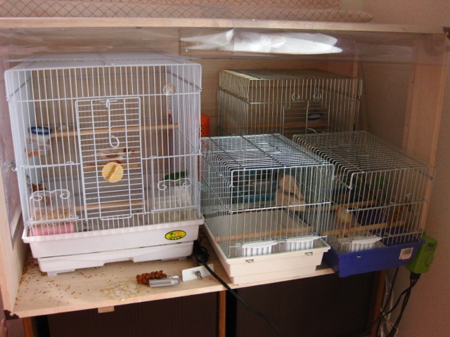 ヒーターも使ってないし無理して保温箱に入れとく必要はないのですが、4羽が4羽お互いの姿が見えてないとにゃーにゃーめーめー言うので見える場所に。