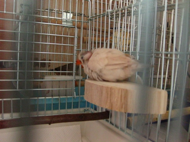 あーちゃんの別居ケージには自然木止まり木配置しました。あーちゃんは自然木怖がらないし、足の刺激に成って良いかと。
