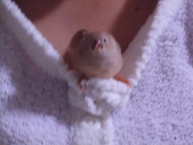 かなりボケてますがあたしの襟もとに落ち着くちゃんぷ。