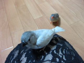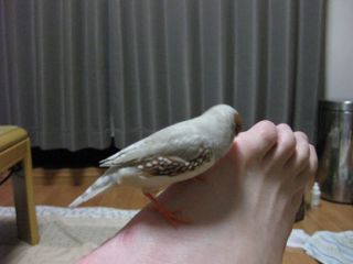 カーテンレールの上まで行けるようになり、落ちた粟玉もつついて食べる事ができました。