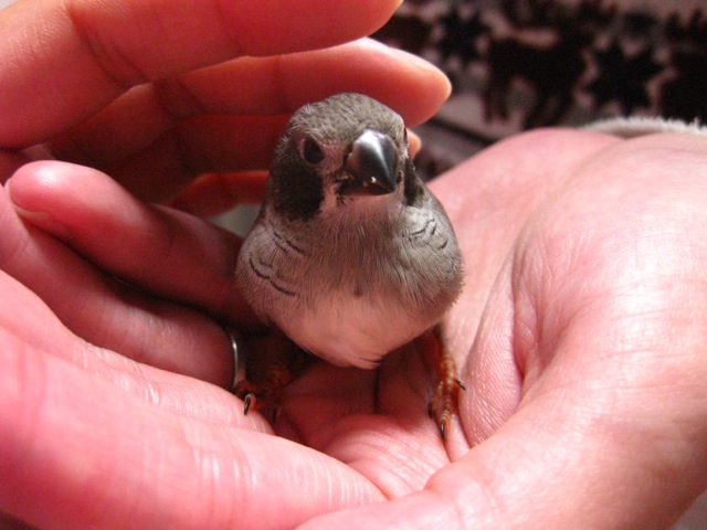 お店では白文鳥と兄弟で3羽のケージで暮らしていたのですが、3羽ともベタなれ。