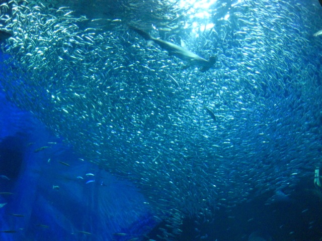子供のころから幾度と通ってますが、ここの見所は…そうですね、大水槽のサメたちでしょうか。